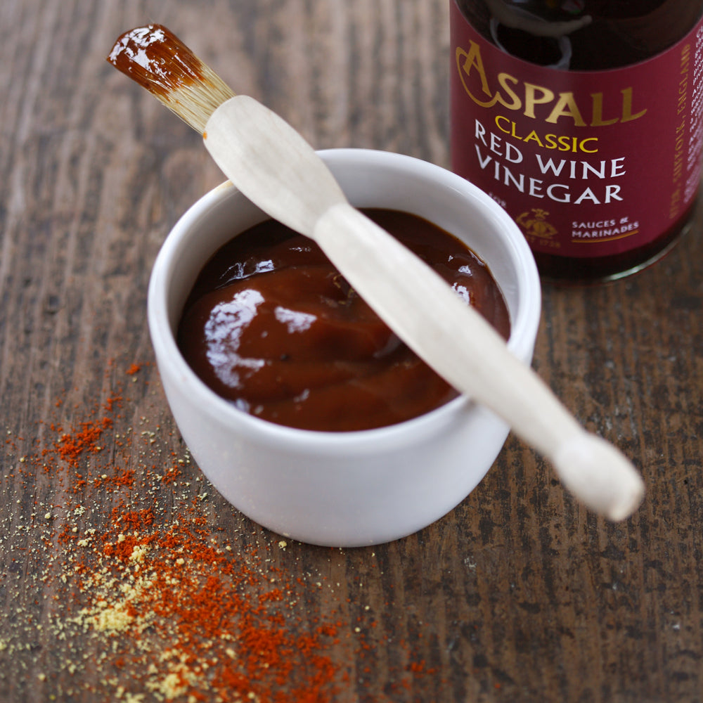 1. Mix the Aspall Red Wine Vinegar, mustard powder, brown sugar, water, chilli powder, pepper and a dash of Tabasco in a pan and simmer gently for 25 minutes.
