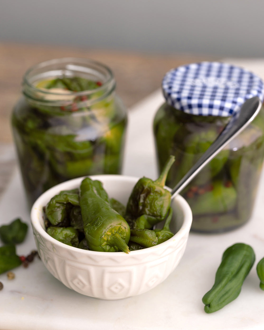 - Pack the peppers into sterilised jars being careful not to squash them too much.